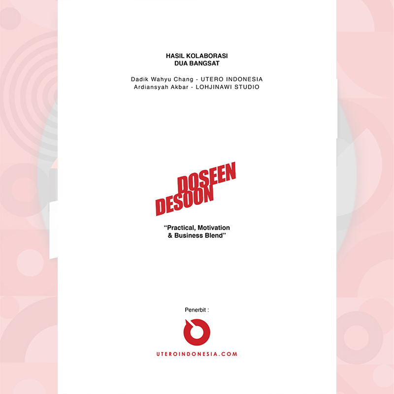 Doseen Desoon: Graphic Design Practical Handbook Berpikir Miring adalah sebuah ebook kolaborasi inspiratif antara Dadik Wahyu Chang, pendiri UTERO Indonesia, dan Ardiansyah R Akbar dari Lohjinawi Studio. Dengan total 126 halaman, ebook ini merupakan panduan praktis yang menggabungkan elemen desain grafis, motivasi, dan strategi bisnis kreatif, sebagaimana tercermin dalam tagline-nya: “Practical, Motivation & Business Blend.”