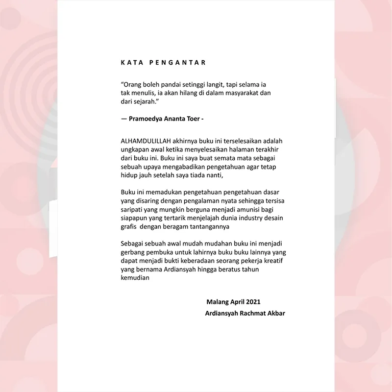 Dalam ebook ini, Dadik Wahyu Chang dan Ardiansyah R Akbar berbagi pengalaman, wawasan, dan tips praktis yang mereka gunakan dalam perjalanan kreatif mereka, termasuk cara menghidupkan ide tanpa terjebak pada pola pikir konvensional. Salah satu kutipan inspiratifnya, “Jangan pernah berharap bisa hidup dari sebuah profesi yang kita jalankan dengan ragu-ragu,” yang mencerminkan semangat untuk berkomitmen penuh pada passion dan kreativitas.